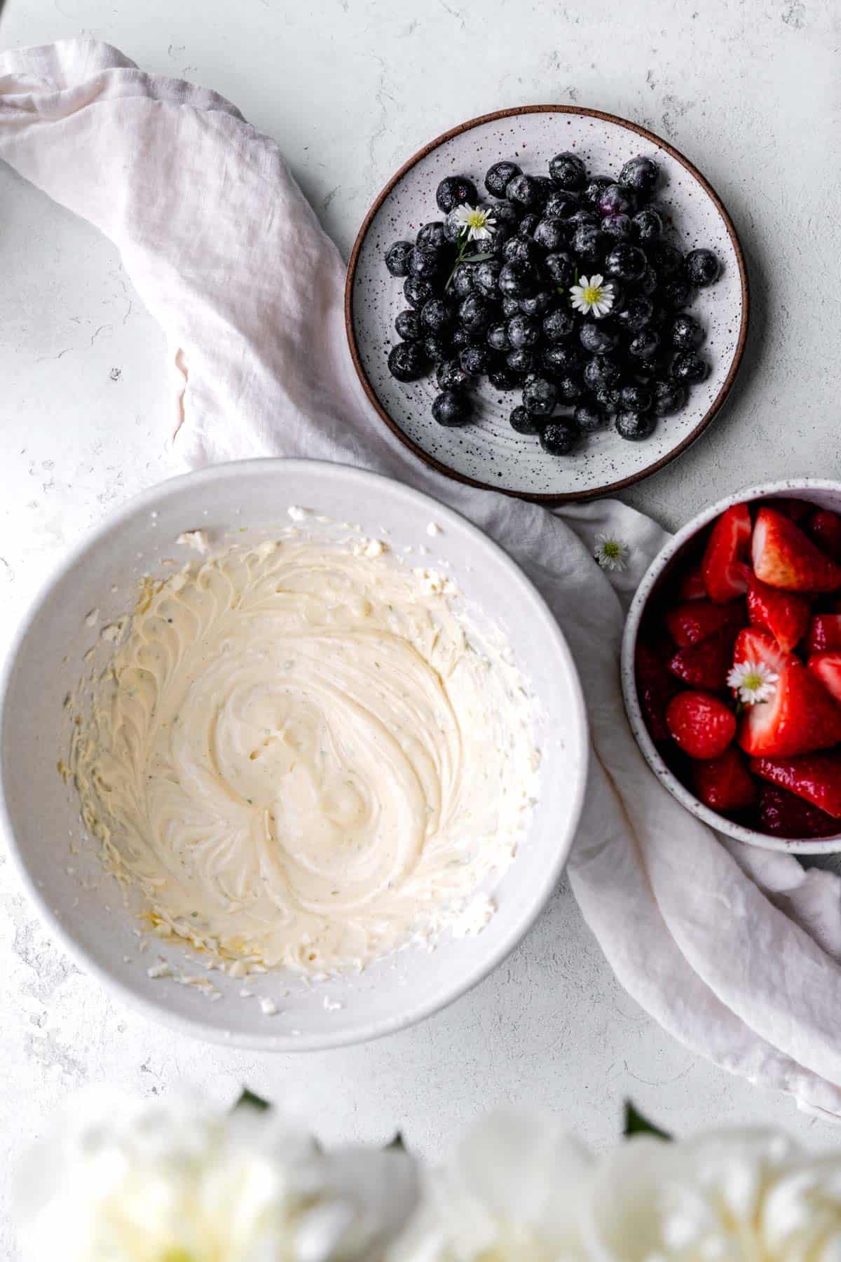 - If you don't want to place the strawberries and blueberries in a certain pattern you can just mix all of the strawberry mix ingredients and all of the blueberry mix ingredients in the same bowl