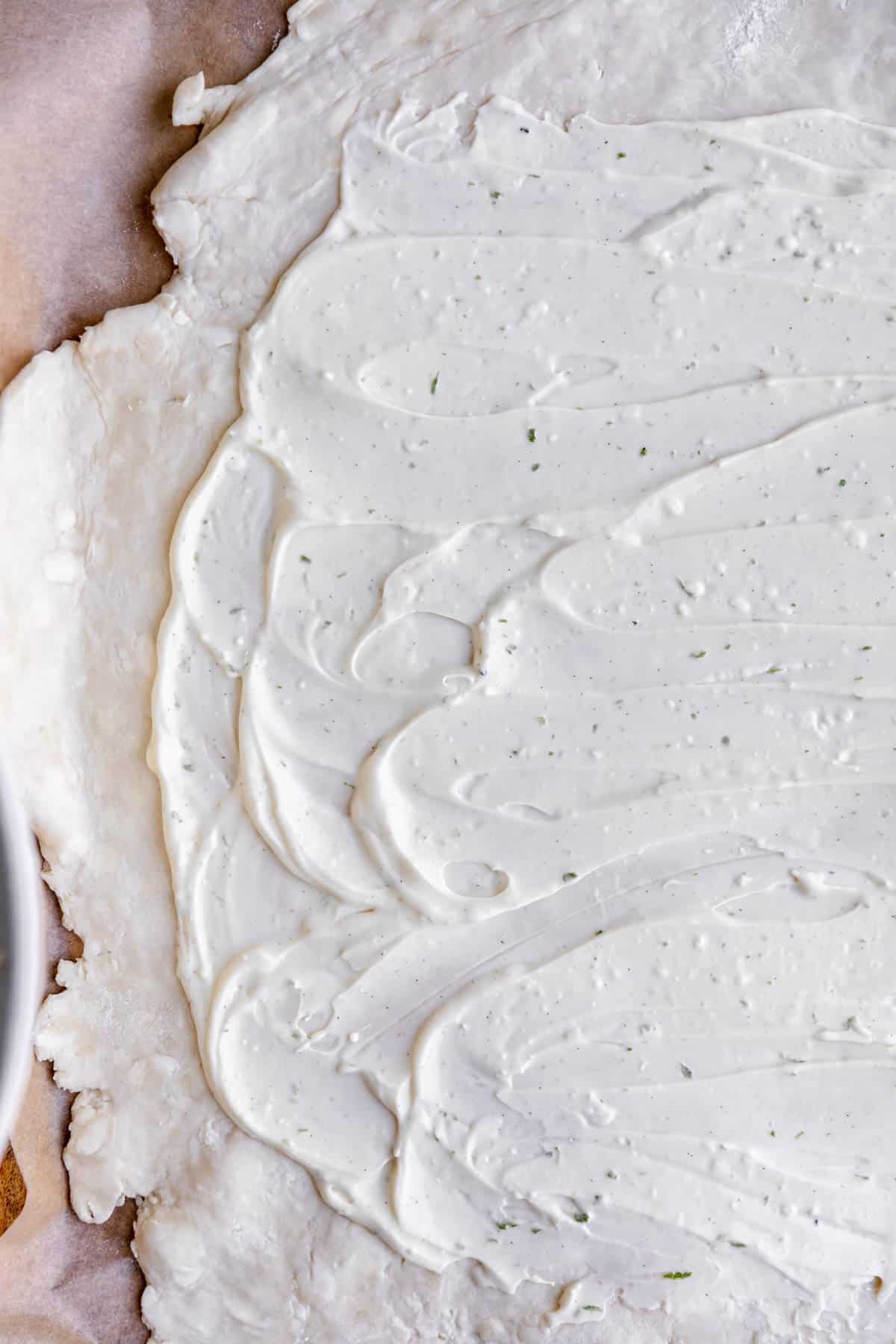 Step 1: Roll out crust on parchment paper.